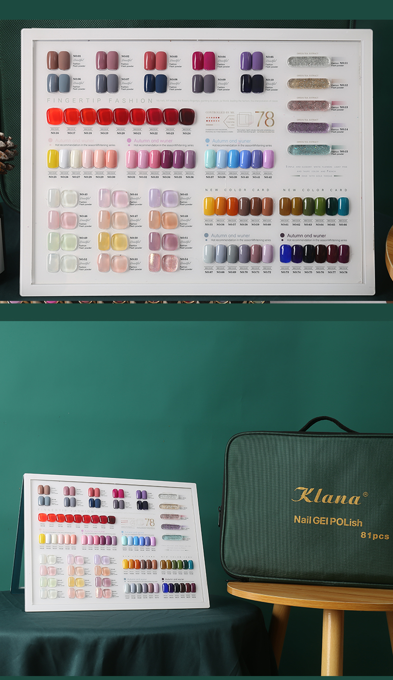 KLANA 78 Colors Gel Nail Polish Set Glitter Semi Permanent Hybrid Gel Varnish Base Top Coat Soak Off UV LED Nail Art